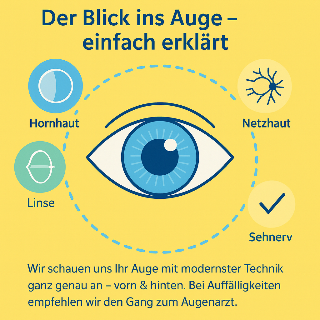 Auswertung & Beratung: Besprechung der Ergebnisse und gegebenenfalls Empfehlung einer augenärztlichen Abklärung.